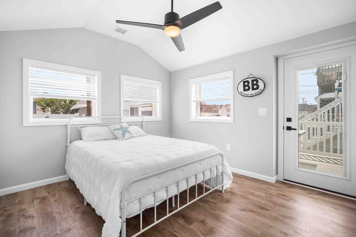 Tận hưởng ngôi nhà ở Brigantine tuyệt đẹp! Một nơi nghỉ dưỡng ở tầng 2 cách bãi biển 5 phút đi bộ và cách tầm nhìn hoàng hôn tại vịnh vài bước chân! 6 thẻ bãi biển, xe đẩy bãi biển, ghế và ô được cung cấp. 2 phòng ngủ với giường queen, 2 ghế sofa ngủ, phòng khách, phòng khách, nhà bếp rộng rãi. Máy giặt/máy sấy, sàn ăn, sân sau chung với hố lửa, vòi sen ngoài trời. Đồ chơi, trò chơi và bàn chơi 10 trong 1. TV thông minh trong mỗi phòng ngủ. Khóa điện tử, Chuông cửa, điều hòa nhiệt độ, khăn trải giường và khăn tắm được cung cấp.