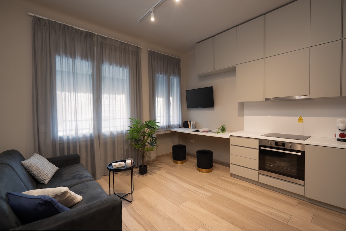 Studio dịch vụ hiện đại ở Athens với dịch vụ giặt ủi và phòng tập thể dục
