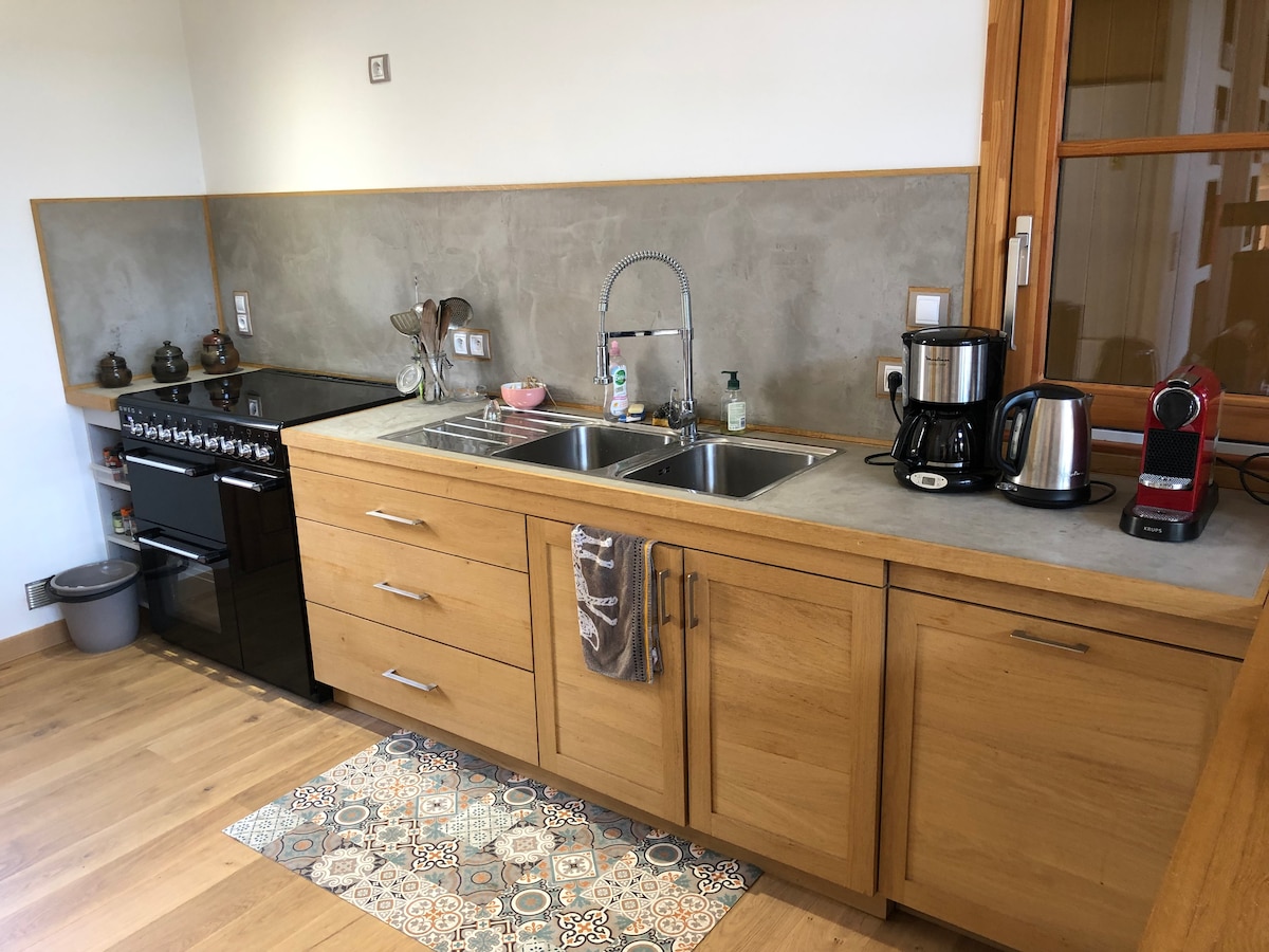 Tại đây, mọi chi tiết đều được thiết kế để gặp gỡ bạn, với bạn bè và gia đình. Nhà nông trại cũ này được cải tạo bằng vật liệu địa phương và một chút thanh lịch hiện đại, là nơi hiếm hoi mà bạn cảm thấy như ở nhà, nhưng tốt hơn. Không gian rộng lớn (4 phòng ngủ, phòng khách ấm cúng, sân hiên đầy nắng) và các tiện nghi cao cấp (nhà bếp được trang bị cực kỳ tiện nghi, bộ đồ giường cao cấp, bếp củi) được thiết kế để đảm bảo bạn có những khoảnh khắc khó quên: bữa tối trên sân thượng nhìn ra đồi, đêm trò chơi