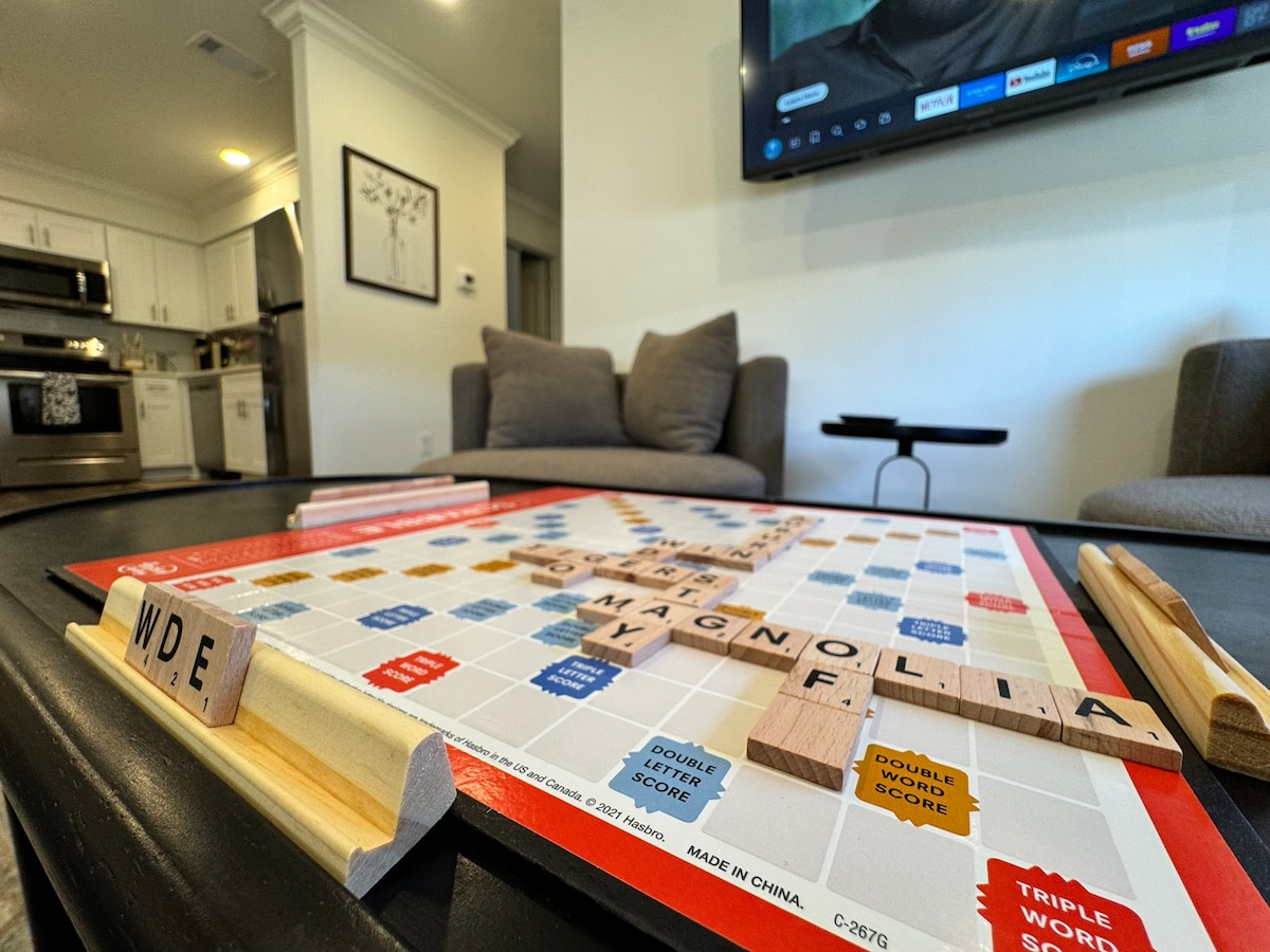 Căn hộ cao cấp gần Magnolia | Tầng 1 | Đi bộ đến Khuôn viên trường & Góc Toomer ✔️ Phòng Serene King + Phòng Elegant Queen ✔️ Wi-Fi tốc độ cao và TV thông minh cao cấp ✔️ Nhà bếp hiện đại, đầy đủ tiện nghi ✔️ Bãi đỗ xe miễn phí tại chỗ (2 chỗ) ✔️ Dễ dàng ra vào tầng 1 ✔️ Có thể đi bộ đến Khuôn viên trường, Toomer's, Quán cà phê và Nhà hàng Trải nghiệm sự thoải mái tinh tế của Auburn tại The Pearl Off Magnolia. Xin lưu ý chỉ có một TV, nằm trong phòng khách.