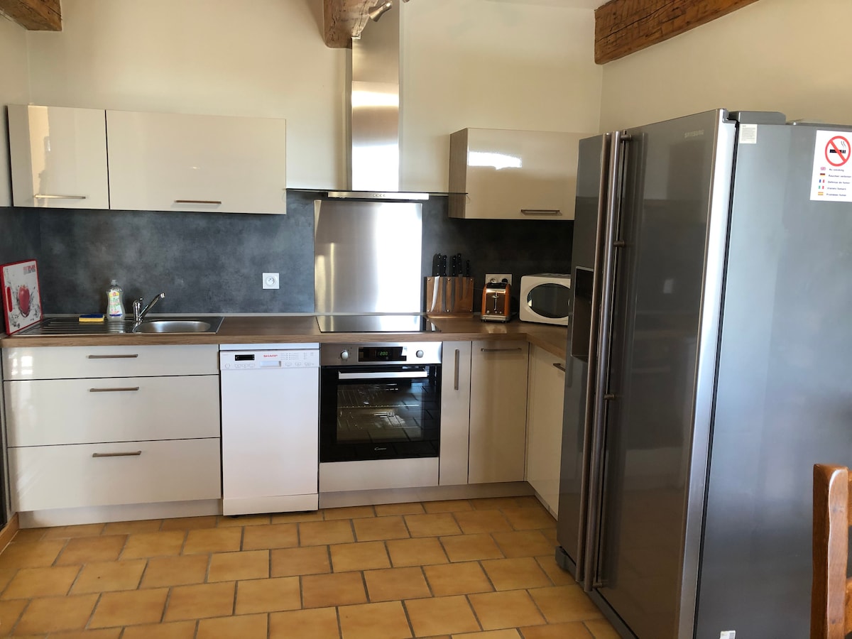 Cách thành phố thời trung cổ vài phút đi xe hơi, hãy tận hưởng căn hộ 2 phòng ngủ ở tầng trệt này, nằm trong một khu dân cư an toàn. Bạn được toàn quyền sử dụng hồ bơi và sân tennis. Một hồ, các khu vực mua sắm gần đó. Chỗ ở thoải mái, được trang bị đầy đủ tiện nghi với bếp nhỏ: lò nướng, lò vi sóng, nồi chiên không dầu, tủ lạnh/tủ đông, máy pha cà phê Tassimo. Giường và sofa giường mới. Sân thượng được trang bị nội thất nhỏ. Khăn trải giường và khăn tắm được cung cấp. Chỗ đỗ xe riêng. Tự nhận phòng hoặc chào đón tùy theo sự thuận tiện của bạn.