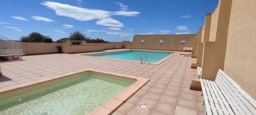 toàn bộ chỗ ở, nằm ngay trung tâm khu nghỉ dưỡng tại Quảng trường Địa Trung Hải, ở tầng 5 (có thang máy) Căn hộ 45 m2 + sân thượng 8 m2. Quang cảnh biển tuyệt vời. Bếp có máy rửa chén, tủ lạnh /tủ đông, máy pha cà phê cổ điển lò vi sóng / lò nướng và cà phê nespresso Phòng khách với ghế sofa và ghế bành, TV. Phòng ngủ với 140 giường và phòng 8,80 m2 khác với giường tầng. Phòng tắm có máy giặt, wc riêng biệt. Khăn tắm và khăn tắm không được cung cấp tùy chọn nhà để xe