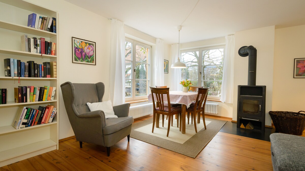 Our small house (built in 2012, awarded the Baden-Württemberg state prize for exemplary construction) is located in an old farmhouse garden in a quiet village. The furnishings are simple so that you can truly enjoy the beauty of the house and garden. We have therefore deliberately chosen not to include a television.