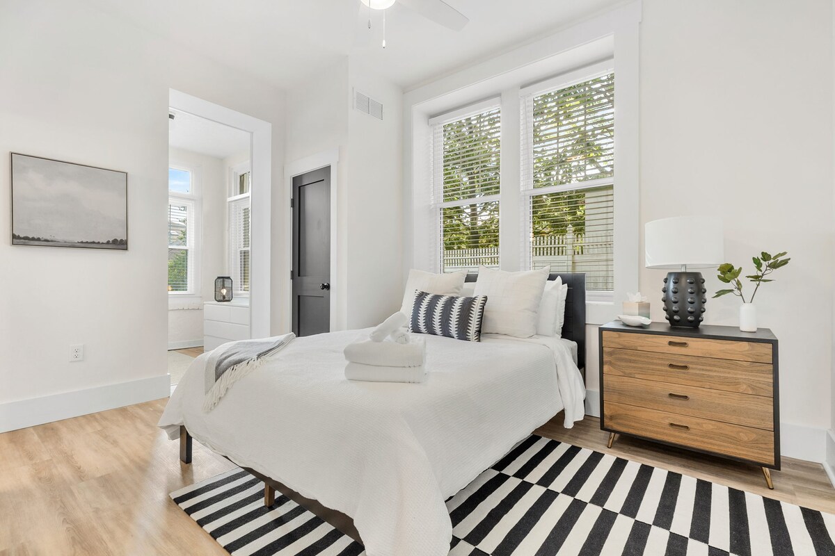Nằm đối diện Công viên Chimborazo xinh đẹp, ngôi nhà đá vôi lịch sử này có từ năm 1902. Toàn bộ mặt trời tràn ngập tầng trên cùng có hai phòng ngủ, đồ ăn trong bếp và phòng tắm đầy đủ. Căn hộ cũng bao gồm TV thông minh 56"và hai khu vực bàn làm việc nếu cần. Bạn cần giặt quần áo? Không vấn đề gì, có một lỗ thông hơi tất cả trong một máy giặt/máy sấy. Hiên trước chung với rocker và tầm nhìn ra công viên, và một sân sau chung cung cấp các cách thân thiện với khoảng cách xã hội bổ sung để đi chơi.