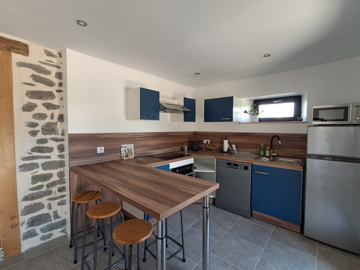 Khám phá En Haut du Paradis, một khung cảnh hiện đại rộng 94 m² ngập tràn ánh sáng☀️, tọa lạc tại vị trí lý tưởng ở Sadroc, ngay trung tâm Corrèze. Với hai phòng ngủ cỡ king🛏️, bếp được trang bị đầy đủ tiện nghi và spa riêng 5 chỗ với tầm nhìn ngoạn mục, đây là nơi hoàn hảo để thư giãn trong sự riêng tư. Tận hưởng sự thoải mái cao cấp: điều hòa không khí❄️, nội thất được thiết kế riêng, phòng tắm thanh lịch và một bức tường đá làm tăng thêm nét quyến rũ và cá tính.