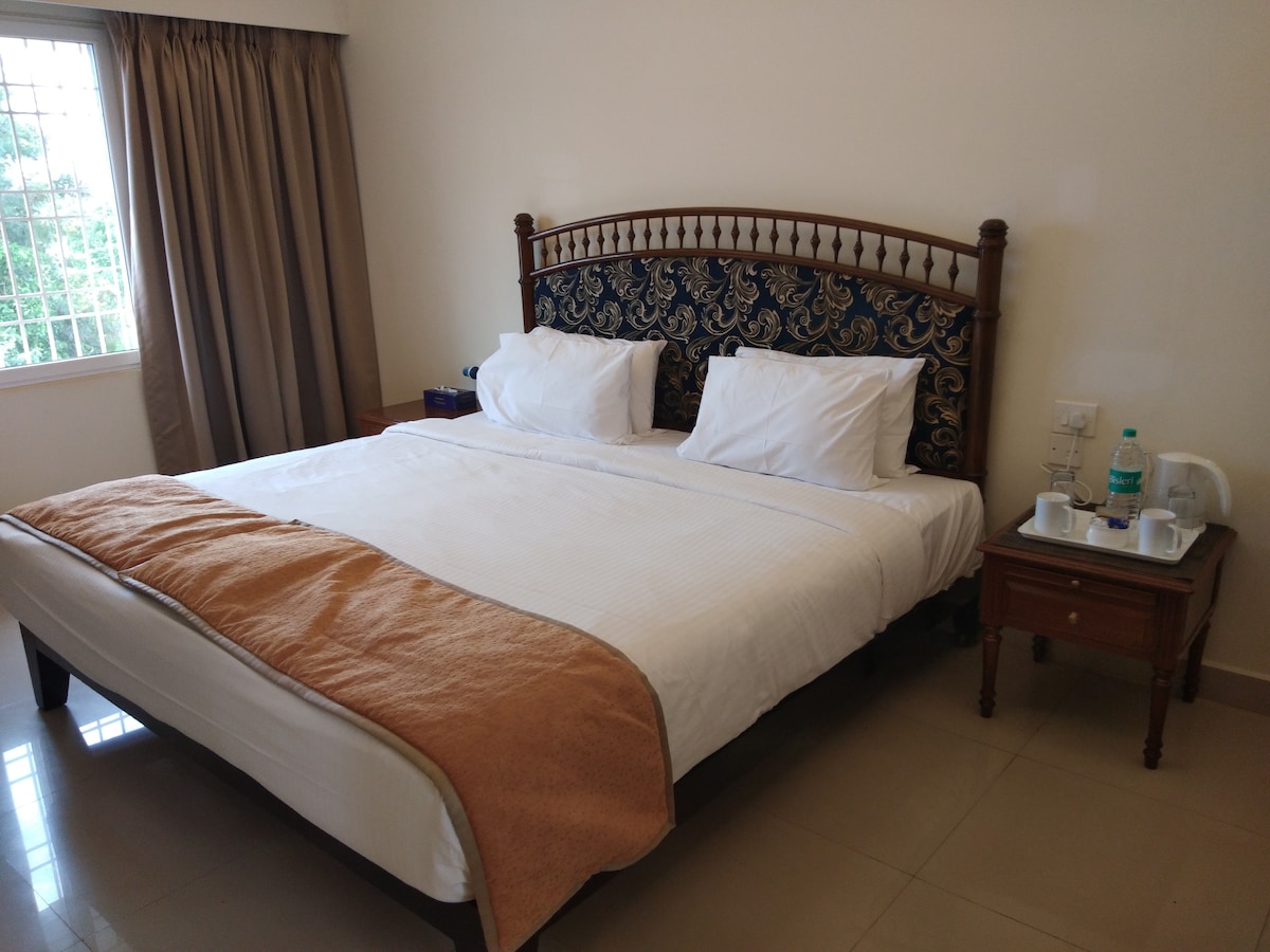 French colonial building with high ceilings. Beautiful garden with sit outs.The rooms are big and spacious, done up with antique furniture.