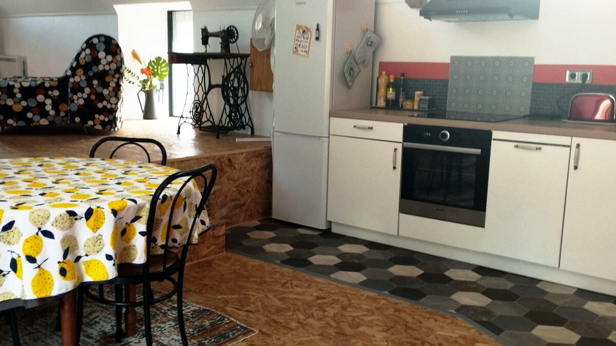 Chỗ ở rộng rãi và thanh bình, tại Cransac les Thermes. Được xếp hạng 3 sao Gîtes de France Aveyron. Đo 83 m2 đã được cải tạo hoàn toàn. Ngôi nhà ở tầng trệt này nằm ở tầng trệt của một ngôi nhà nông thôn. Sàn nhà bị chủ nhà sử dụng. Trong một ngọn đồi nhỏ gần trung tâm thành phố, nó có tất cả các tiện nghi của một ngôi nhà tiêu chuẩn 5 phút đi xe từ phòng tắm nhiệt và cách trung tâm thành phố 2 phút. Thức dậy với tiếng gà gáy 😊