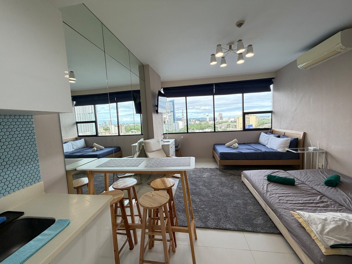 Tận hưởng một kỳ nghỉ ấm cúng và rộng rãi ngay trung tâm Thành phố Cebu. Căn hộ 25 m2 này hoàn hảo cho một gia đình nhỏ hoặc một nhóm bốn người, có giường queen với giường kéo ra, nhà bếp đầy đủ, Wi-Fi nhanh, Netflix và cảm giác ấm cúng như ở nhà. Ở tầng 15, bạn sẽ thích khung cảnh đêm yên tĩnh của Công viên CNTT Cebu. Gần Khách sạn Waterfront, Công viên CNTT, Công viên Kinh doanh Ayala, cùng các quán cà phê và nhà hàng gần đó. Tận hưởng thời gian lưu trú thư giãn với các địa điểm ăn uống gần đó, dễ dàng đến các điểm trong thành phố để có một chuyến thăm đáng nhớ!!!