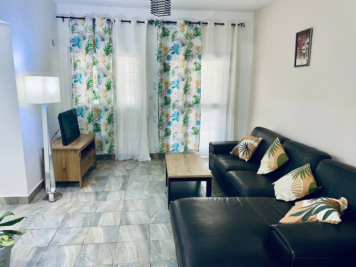 Détendez-vous dans ce logement calme et élégant.chic moderne et confortable , sécurisé, goudronné jusqu’au site , 15 minutes de l’aéroport, entouré des comorbidités , services d’entretien, wifi , parking, cuisine équipée, baignoire, eau chaude, télévision 55 pouces, climatisation salon et chambre, grande chambre avec un grand lit 3 places (1.6 mètres) placard , TV , 3 terrasse ( salon, cuisine et chambre principale) d’une superficie de 150m2