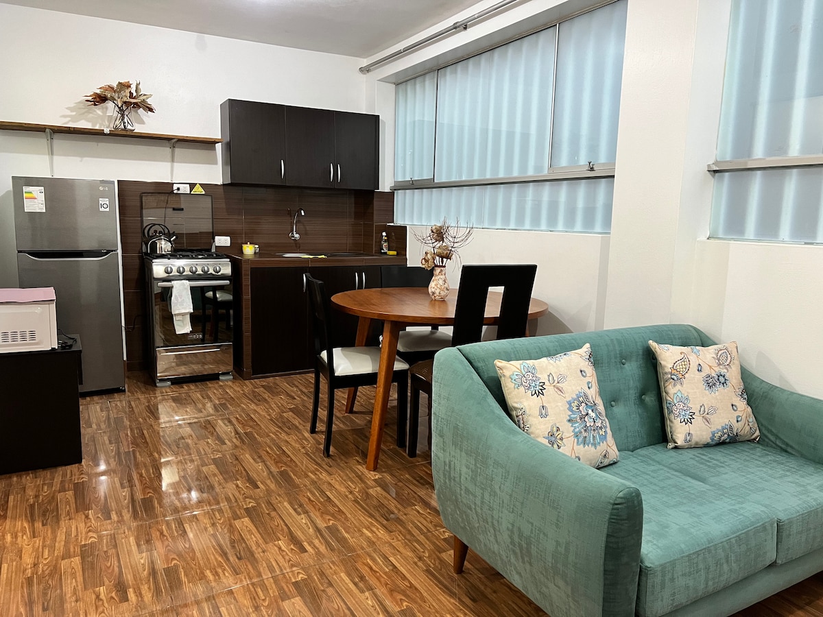 Disfruta de la sencillez de este alojamiento tranquilo y céntrico. en un impecable minidepartamento ubicado en el segundo nivel,listo para una bienvenida a todos los que deseen pasar una agradable y tranquila estadía en la ciudad excelente ubicación a cuatro cuadras de la plaza de armas. Es un apartamento pequeño y acogedor cómodo ideal para persona sola o pareja. El apartamento se encuentra en el segundo piso puede contar con el anfitrión para cualquier información o requerimiento que necesite