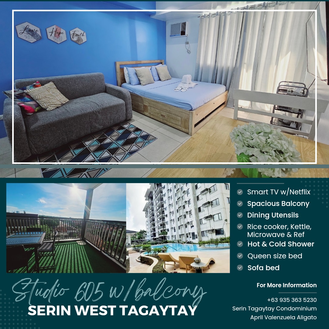 MỚI, HOTEL-INSPIRED, Căn hộ chung cư @ Serin East Tagaytay. Chúc bạn có một KỲ NGHỈ VUI VẺ tại Thành phố Tagaytay MÁT MẺ, một điểm đến du lịch nổi tiếng. Căn hộ chung cư của chúng tôi cung cấp một trải nghiệm đặc biệt giống như phòng khách sạn với giá cả rất phải chăng và đáng đồng tiền chỗ ở. Thư giãn và thoải mái. Một viên ngọc ẩn trong Tagaytay để chia sẻ với khách của chúng tôi.