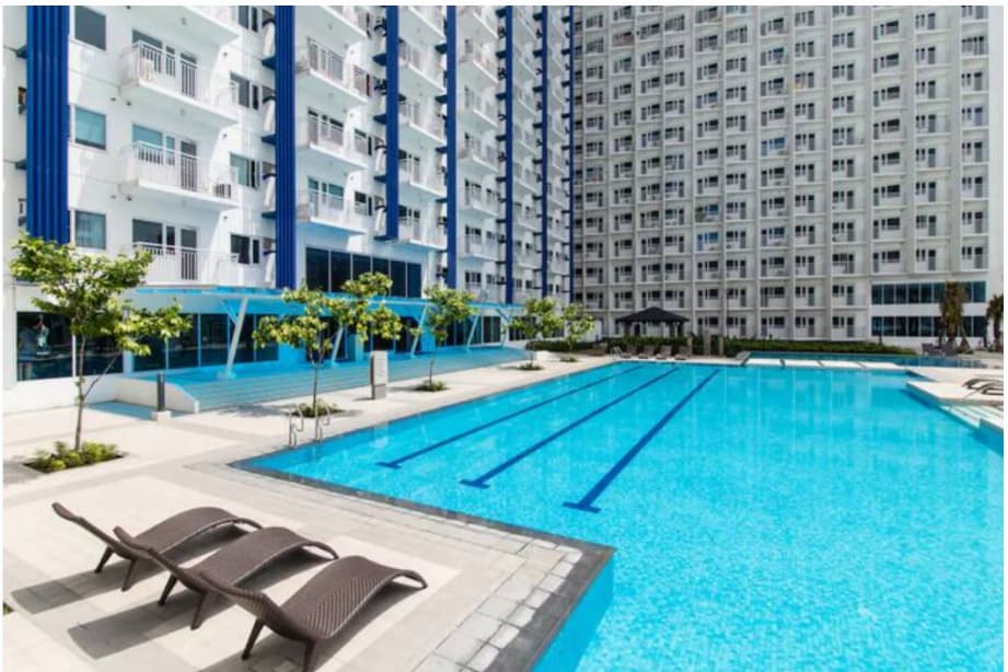 Hồ bơi hiện đại hướng ra 1 phòng ngủ với ban công+Netflix ở Makati