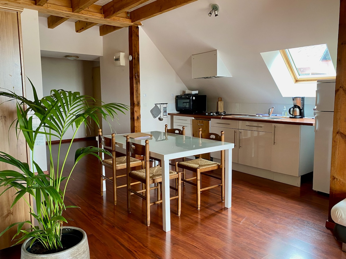Tầng lửng riêng ấm cúng nằm trong một khách sạn cũ đã được cải tạo ngay trung tâm ngôi làng đang bị sa mạc hóa Rochefort-Montagne, lý tưởng để đi bộ đường dài, trượt tuyết và khám phá Auvergne, Sancy và dãy núi Puy. Bồn tắm nước nóng, điều hòa không khí, giường Emperor (2x2m), nệm EMMA trên thanh, bếp đầy đủ tiện nghi với máy rửa chén, lò nướng, lò vi sóng, pin dụng cụ, nước sốt, crepe, raclette, bếp ga và bếp từ, tủ lạnh SMEG, máy giặt, máy sấy, TV LG