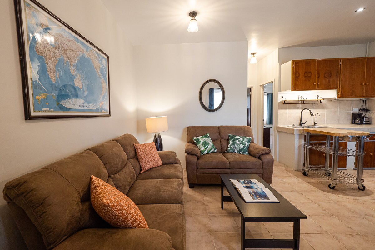 Tọa lạc ở trung tâm Koror, căn hộ mới được cải tạo của chúng tôi nằm trong khoảng cách 10-15 phút đi bộ đến các trung tâm lặn, siêu thị, trung tâm văn hóa quốc gia, bệnh viện, chợ địa phương, cửa hàng, quán bar và nhà hàng của Palau! Hoàn hảo cho một cặp vợ chồng, khách đi một mình hoặc khách dài hạn.