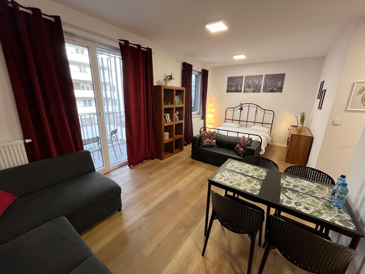 Pachnące nowością mieszkanie w doskonale skomunikowanym miejscu blisko serca Warszawy. Idealne do pracy jak i wypoczynku. Przytulny apartament na 7 piętrze z dostępem do Internetu, parkingiem podziemnym oraz klimatyzacją. A new apartment in a perfectly communicated place close to the heart of Warsaw. Perfect for work and leisure. A cozy apartment on the 7th floor with Internet access, underground parking and air conditioning.