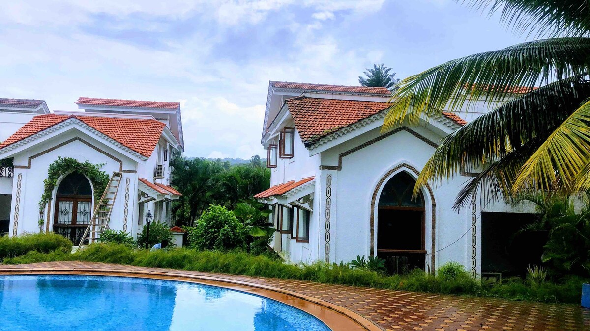 Amigos là Biệt thự Hồ bơi rộng rãi 2BHK - 2 tầng với môi trường xung quanh xanh tươi, nằm ở phía Bắc ❤️Goa trong vòng 10 phút lái xe từ các bãi biển và câu lạc bộ nổi tiếng. Tiện nghi bao gồm NETFLIX cùng với Wifi tốc độ cao 150 MBPS, hoàn hảo từ chỗ làm tại nhà. Bên cạnh 2 phòng ngủ, còn có Sân hiên, 2 phòng khách và nhà bếp đầy đủ tiện nghi với không gian mở cho những người yêu sách/chơi trò chơi. Biệt thự nằm trong cộng đồng an toàn và lộng lẫy với an ninh 24x7.