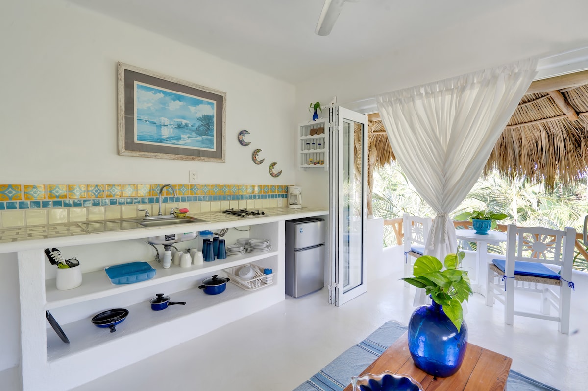 Studio hoàn hảo cho một cặp đôi với giường cỡ Queen, nhà bếp, điều hòa nhiệt độ, ban công và nhiều hơn nữa. Nhưng chúng tôi có thể thêm một giường futon đơn rất thoải mái, cho thêm 1 người trong Studio này với một khoản phí nhỏ. Studio Cuiza nằm ở tầng 3 của tòa nhà của chúng tôi và chỉ cách tầng thượng, hồ bơi với tầm nhìn ra biển và palapa một tầng cầu thang. Từ ban công, bạn có thể tận hưởng tầm nhìn ra núi và thị trấn và ánh sáng ban mai.