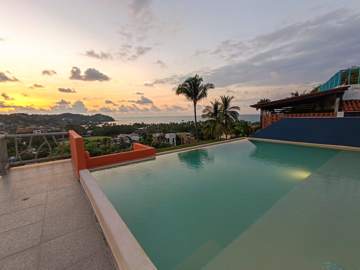 Biệt thự ChulaVista. Chào mừng bạn đến với căn hộ riêng của mình với 2 phòng ngủ, một bếp, một sân thượng và một phòng khách kết nối 2 phòng ngủ (mỗi phòng có phòng tắm riêng). Nó ở tầng ba với trần nhà cao và một palapa. Nó có TV thông minh và Wi fi Khách sạn nhỏ của chúng tôi nằm trên đồi cách trung tâm 7 phút với tầm nhìn đẹp nhất trên núi. Chúng tôi có lễ tân, hồ bơi và khu vực phòng khách, và chúng tôi sẽ đảm bảo bạn sẽ có thời gian lưu trú tuyệt vời nhất tại Sayulita!