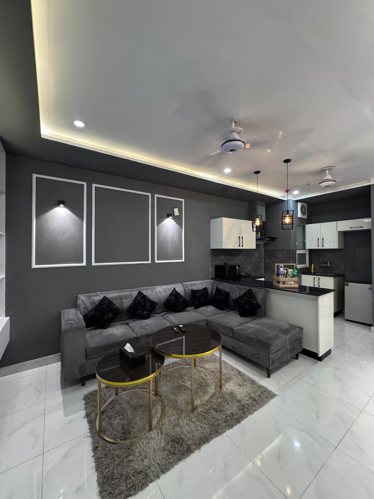 Luxury Dark-themed 1BHK Starlit lounge Lahore