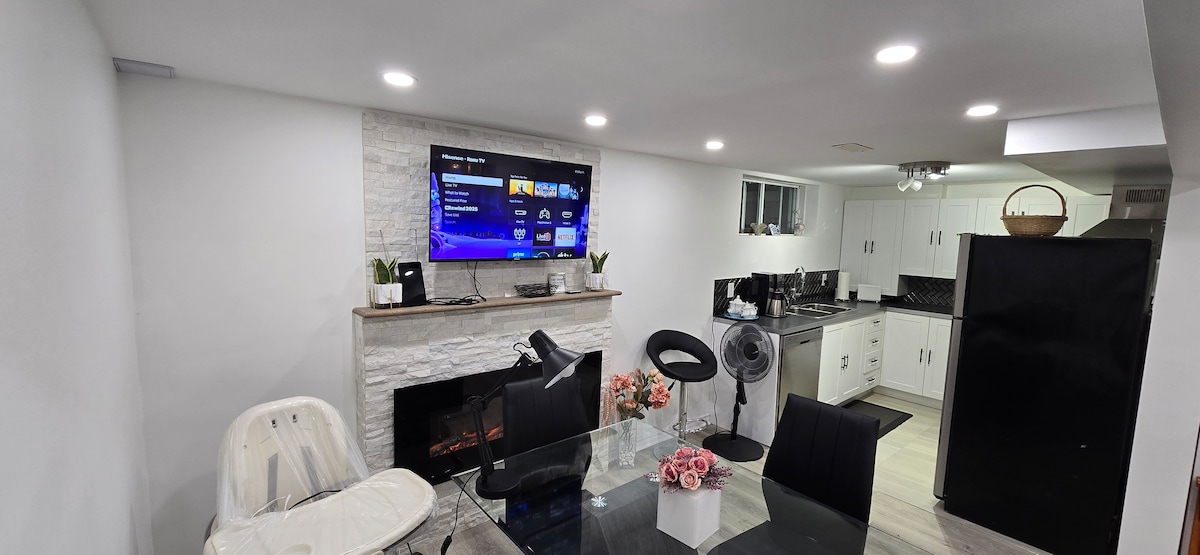 Modern Comfort near YUL Airport! This stylish retreat is just 15 minutes from YUL, offering a haven of modern comfort. You'll find everything you need for a relaxing stay, including a fully equipped kitchen to unwind in after a long day. Sit back, enjoy a complimentary cup of coffee or tea, and watch your favorite Netflix show. Book now and experience the perfect blend of convenience and style.