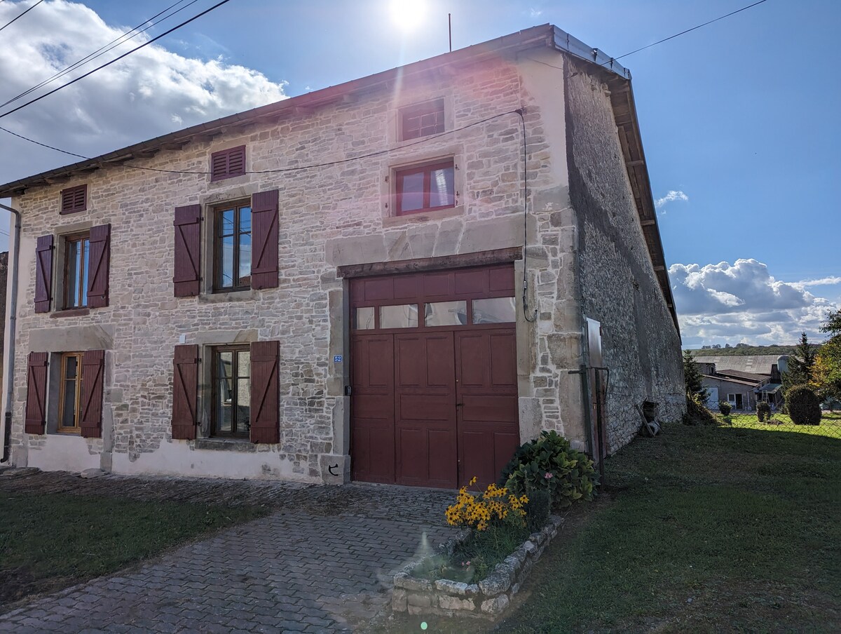 Nhà nghỉ thôn dã đẹp rộng 80m2 ở tầng trệt và 20m2 ở tầng 1, có thể ở 6 người lớn : - Ba phòng ngủ với giường đôi - Một phòng khách với sofa giường - Một tầng lửng với giường cũi Trong thời gian lưu trú, bạn có thể nấu những chiếc pizza ngon, nhờ có lò nướng ngoài trời của chúng tôi, trên một đống lửa. Ngoài ra, hãy tận hưởng sân thượng của chúng tôi nhìn ra rừng. Nhiều cuộc đi bộ trong rừng đang chờ bạn, trên những con đường mòn của những ngọn núi nổi tiếng của chúng tôi "cặp song sinh ".