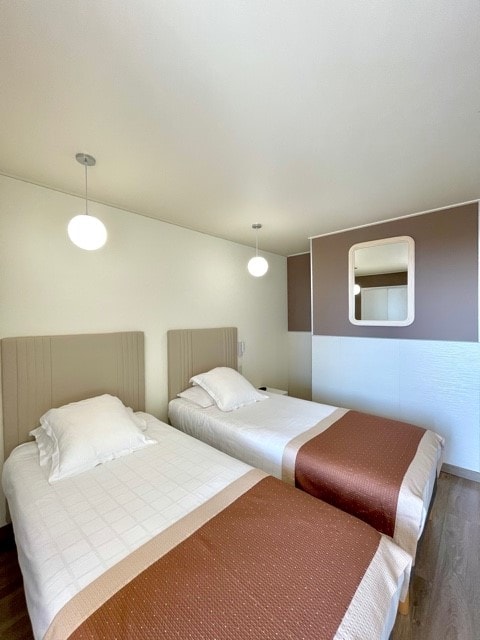 Cet hôtel familial vous offre un hébergement de qualité avec un confort 4 étoiles. Nos 48 chambres « non fumeurs », réparties sur les trois niveaux de l’hôtel, sont décorées avec le plus grand soin et possèdent chacune un style différent. Toutes sont équipées de télévision écran plat avec TNT et chaînes internationales, plateau de courtoisie avec bouilloire, wifi gratuit, climatisation, téléphone direct, coffre-fort individuel, sèche-cheveux.