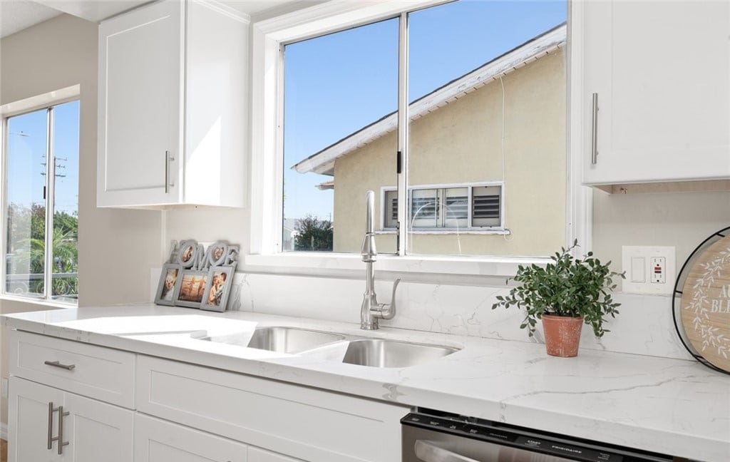 Stunning single level home . You will not be disappointed! This beautifully upgraded home exhibits all the quality & charm one would expect from a ground up remodel with a modern & luxury lifestyle to include but not limited to spacious bedrooms and baths, newly landscape with high end turf, modern LED lights walkway, snowwhite rocks with white roses and zen garden. You won't miss our Exquisite & extravagant kitchen & dinning room for your family to enjoy. The table seats 8-10 plus 4-6 @ island.