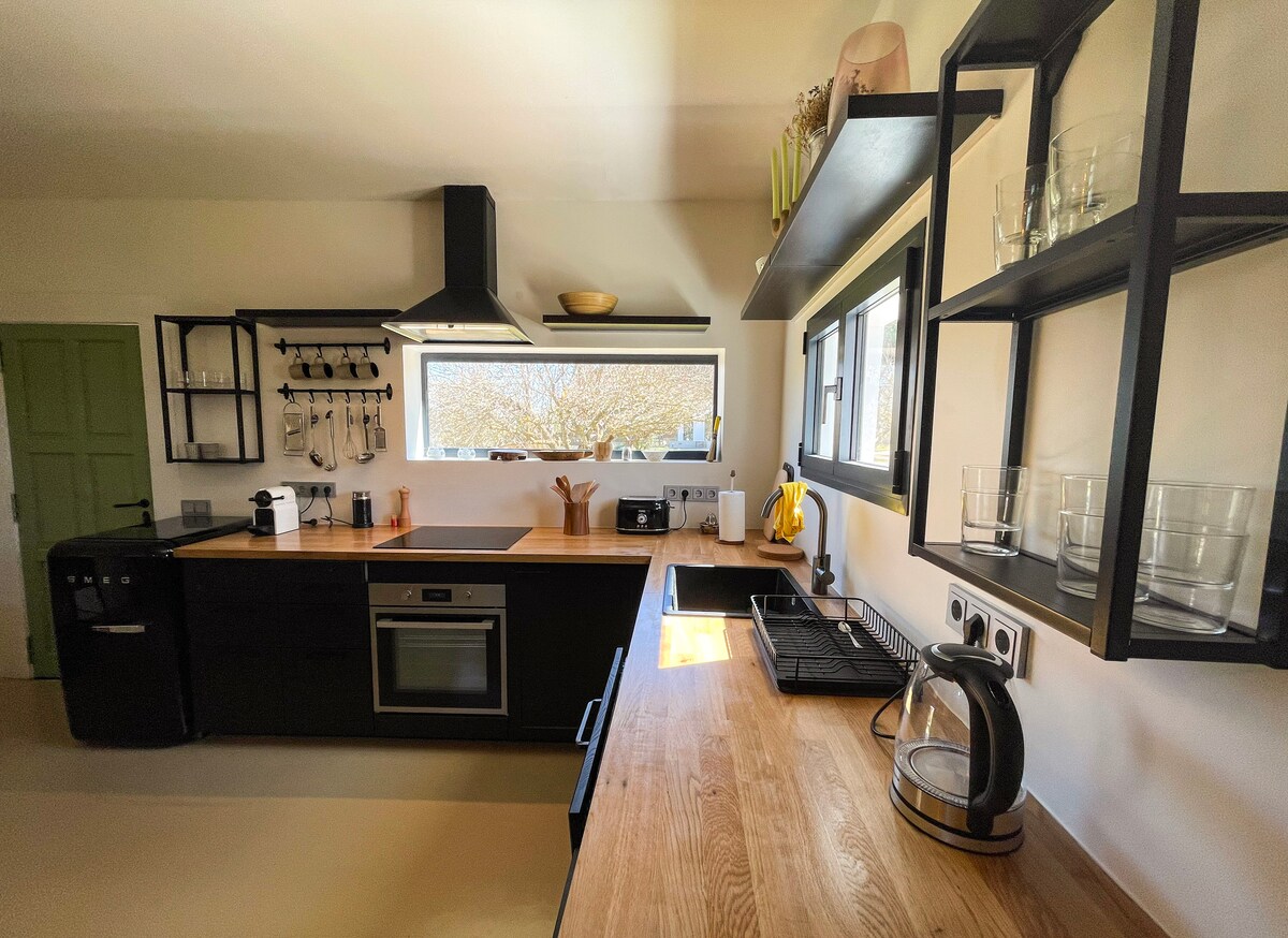 Escape to a tranquil casita in the picturesque Mallorcan countryside of Sencelles. This private guest house, perfect for couples or small families, is surrounded by vineyards and olive groves. Enjoy a king bed, dedicated workspace, and a private patio. You'll also have access to a beautiful shared saltwater pool. A peaceful retreat for 2-3 guests seeking an authentic island experience.