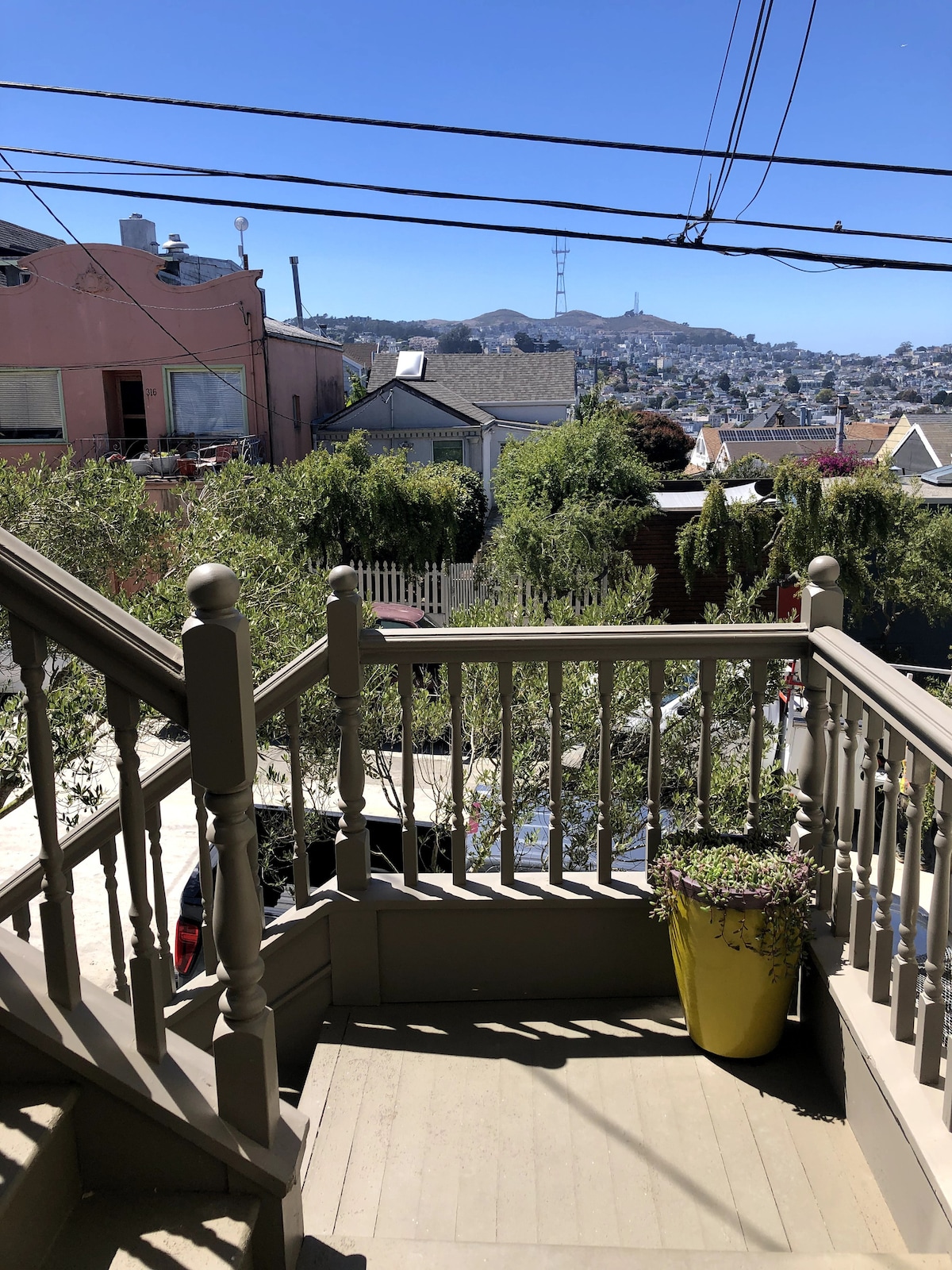 Tận hưởng khung cảnh tuyệt đẹp ở nơi ẩn náu trên đỉnh đồi này trong khu phố nhiều nắng nhất của SF. Ngạc nhiên trước khung cảnh trong khi thưởng thức một tách cà phê hoặc một ly rượu vang. Làm việc từ xa với Wi-Fi nhanh trong căn hộ hiện đại rộng 900 m2 của chúng tôi. Chúng tôi sống ở tầng trên, vì vậy thỉnh thoảng bạn có thể nghe thấy tiếng sàn nhà ọp ẹp. * TV thông minh 55" 4K HD (có cáp) * Wifi tốc độ cao * Nệm mút bộ nhớ King * Có rất nhiều chỗ đỗ xe trên đường phố * Tầm nhìn toàn cảnh tuyệt đẹp STR-00007250
