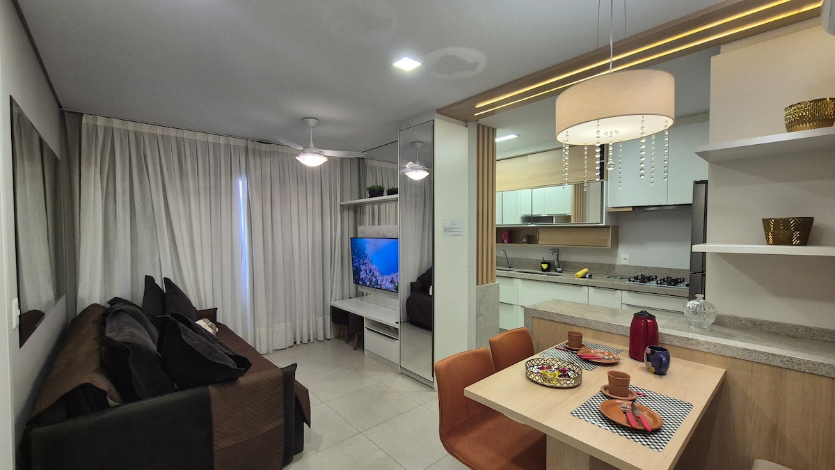 Căn hộ có vị trí tốt, cách bãi biển 11 phút, gần Vòng quay Ferris và Estrada da Rainha nổi tiếng, một điểm du lịch hoàn hảo để chụp ảnh. Bệnh viện Unimed bên cạnh và McDonald's bên kia đường, dễ dàng tiếp cận Praia Brava, Amores và Morro do Careca. Không gian thoáng khí, sáng sủa và có điều hòa không khí, có ban công và tầm nhìn ra rừng, trong một cộng đồng có cổng, có nhân viên hỗ trợ 24 giờ và bãi đậu xe miễn phí. Đắm mình trong tình yêu với BC