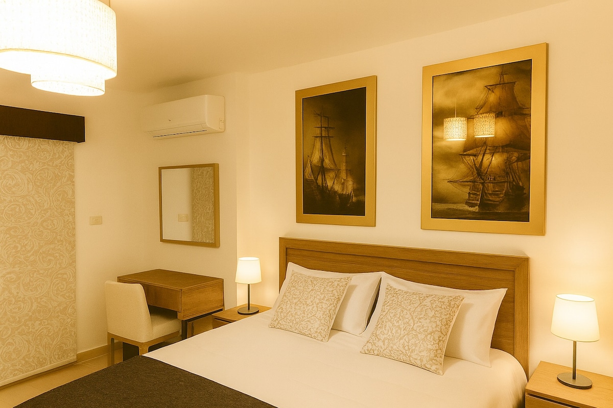 Căn hộ 2 phòng ngủ sang trọng ngay trung tâm Amman Tận hưởng thời gian lưu trú cao cấp tại căn hộ đầy phong cách, tọa lạc tại vị trí trung tâm này với: 1 phòng ngủ rộng rãi với giường cỡ king 1 phòng ngủ với 2 giường đơn thoải mái giường phụ có sẵn theo yêu cầu trước Cũi em bé có sẵn theo yêu cầu trước đó Hoàn hảo cho các gia đình hoặc nhóm nhỏ đang tìm kiếm sự thoải mái, tiện lợi và thanh lịch trong thời gian lưu trú tại Amman.