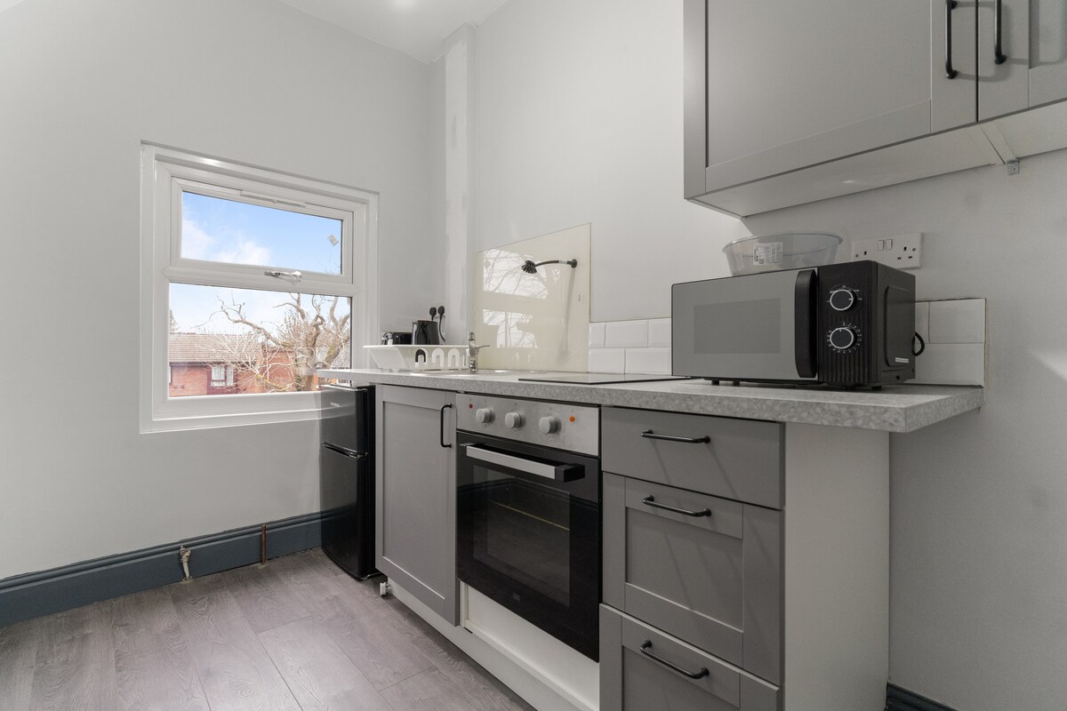 Căn hộ studio sang trọng được hiện đại hóa cao cách Trung tâm thành phố Birmingham chưa đầy 2 dặm và cách Edgbaston Cricket Ground / Cannon Hill Park một quãng đi bộ. Nhà hàng, siêu thị, nơi thờ cúng, phòng tập thể dục, thư viện, hồ bơi tất cả trong khoảng cách đi bộ trên đường Moseley. Bất kỳ thiết bị nào bạn yêu cầu trong thời gian lưu trú đều được nghĩ đến: ấm đun nước, máy nướng bánh mì, nồi chiên không khí, lò vi sóng, máy sấy tóc và bàn là, vì vậy bạn cảm thấy thoải mái trong suốt thời gian lưu trú. GIƯỜNG CỠ KING - 2 người lớn SOFA GIƯỜNG - Phòng ngủ 1 người lớn hoặc 2 trẻ em