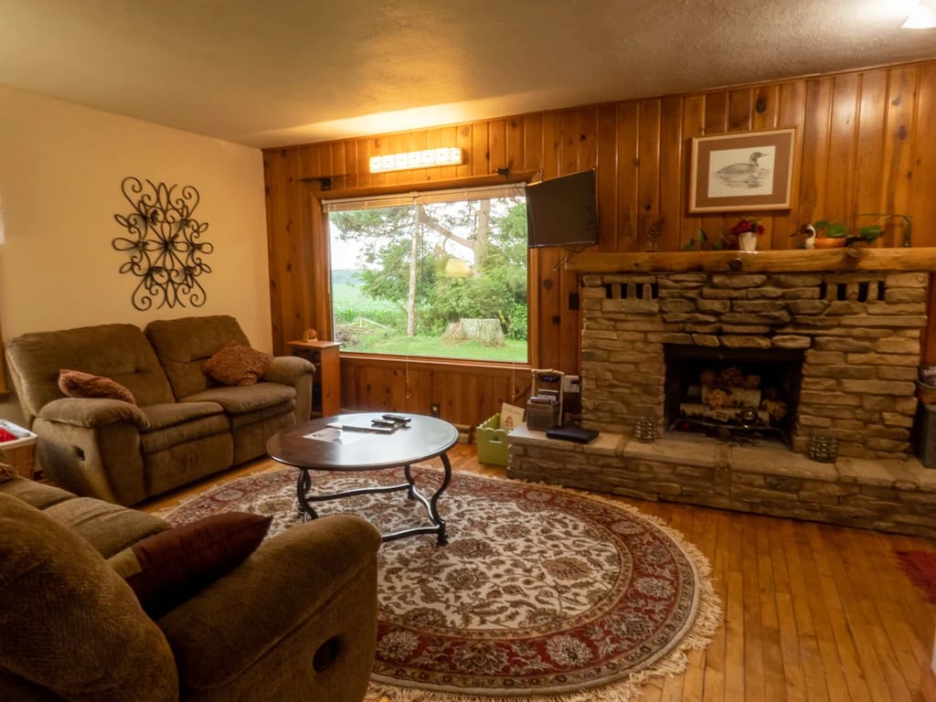 Perched high on the banks of the Apple River, this timber-framed cabin offers spectacular views of the river and wildlife. We’ve spotted bald eagles, deer, ducks, geese, great blue heron, golden eagle, fox, beaver, bear and wild turkey from the comfort of the cabin. One hour from the Twin Cities, it’s the perfect cabin getaway for couples, friends, and families. Located on private acreage in Amery, WI you will be near rivers, lakes, hiking trails and all that Northern Wisconsin has to offer.