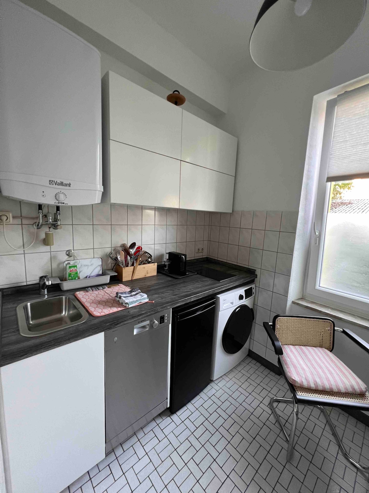 Modernes, neu renoviertes, ruhiges und komplett ausgestattetes Einzimmer-Apartment in sehr guter Lage. Zusätzlich biete ich zwei Fahrräder an, die von Euch kostenlos genutzt werden können. Das Bad ist großflächig und die Küchenzeile vom Schlafbereich abgetrennt. Zu Fuß sind es in die Altstadt nur etwa 15 Minuten, man läuft entspannt am Fluß entlang. Es gibt kostenfreie Parkplätze. In der voll ausgestatteten Küchenzeile sind zwei Platten sowie eine Mikrowelle mit Backfunktion vorhanden.
