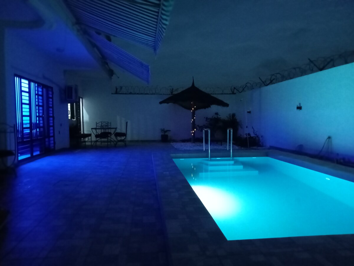 Chào mừng bạn đến với biệt thự này ở Nguerigne gần Ngaparou, Somone và Saly.📍 Một biệt thự lý tưởng để ở kết hợp sự thoải mái, bình tĩnh và tinh tế. Biệt thự có 3 phòng ngủ rộng rãi, mỗi phòng có phòng tắm riêng Một lối vào hùng vĩ trong một khu dân cư an toàn •Bãi đỗ xe • Phòng khách có TV màn hình phẳng • Bếp đầy đủ tiện nghi Tận hưởng một hồ bơi lớn với giường và phòng chờ hồ bơi để có một kỳ nghỉ khó quên. Một địa điểm độc đáo ở Senegal sẵn sàng tạo ra những kỷ niệm đẹp nhất của bạn.