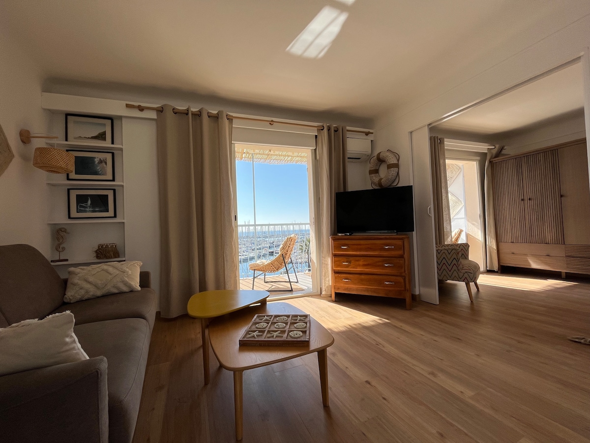 BANDOL - Les Katikias Căn hộ đẹp hướng về phía nam, tầm nhìn ra biển 180° (cảng Bandol). 70 m2. Sân thượng 16 m2. Phòng khách và 2 phòng ngủ (1 giường đôi/ 2 giường đơn) có tầm nhìn ra biển. Nơi ở rất yên tĩnh với bể bơi đẹp trong 4 tháng mùa hè. Bạn có thể đỗ xe ngay cạnh cửa trước. WiFi (pop miễn phí bằng sợi quang). Loa thông minh và trò chơi trên bàn có sẵn Hồ bơi nhìn ra biển trong khu dân cư (gần căn hộ, trong khoảng cách đi bộ bằng cầu thang).