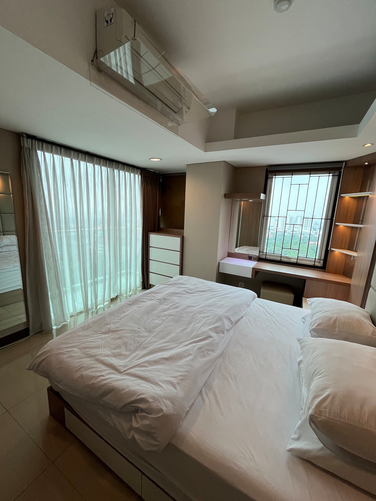 Don’t just book a room. Book a proper one-bedroom suite. A true 56m² layout with clear separation — bedroom, living area, kitchen — designed to live, work, and rest without overlap. Not a hotel room stretched thin. A real space with intention. ✔ 56m² full suite (separate bedroom + living room) ✔ Cinema-ready Smart TV — Netflix, Disney+, HBO, Prime ✔ 2-burner gas stove + stocked kitchen essentials ✔ Dedicated workspace + high-speed WiFi ✔ Balcony city view in central Lengkong