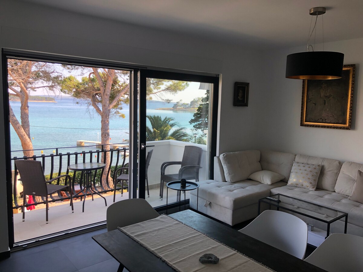 Có một căn hộ lớn hơn,một studio nhỏ hơn, căn hộ được trang trí mới, có chỗ đỗ xe an toàn, ngay trung tâm . Gần bến du thuyền ACI, sân bóng đá, trường học, bãi biển cách 200 m. Khả năng sử dụng thịt nướng trên sân ngoài trời. Các căn hộ nhìn ra biển và từ các phòng ngủ và từ thời gian lưu trú. Mỗi phòng có ban công riêng và phòng tắm riêng. Chỗ ở bao gồm bàn ăn nhà bếp và sân thượng nhìn ra biển. Được phép mang theo thú cưng với một khoản phí bổ sung.