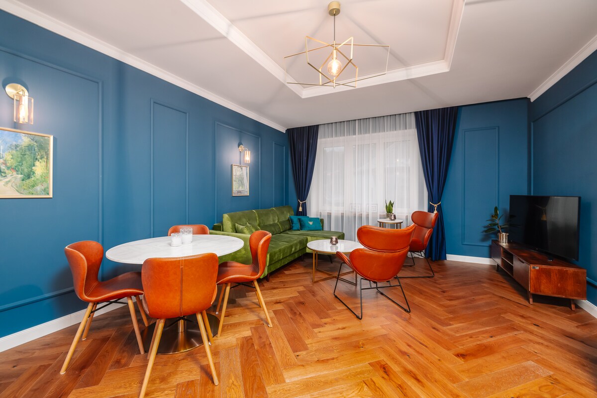Stylish spacious apartment with private bathroom and kitchen close to the town centre, in which elements of historicist style are complemented by modern minimalism. The apartment is located in the historical building of the former Bretschneider shoe factory, which lies close to the square and other attractions, only a few minutes on foot. Nearby are to be found: restaurants, pubs, grocery shop, bowling, Glanzenberg mine. This accommodation is fit for couples, families or other groups of 4.