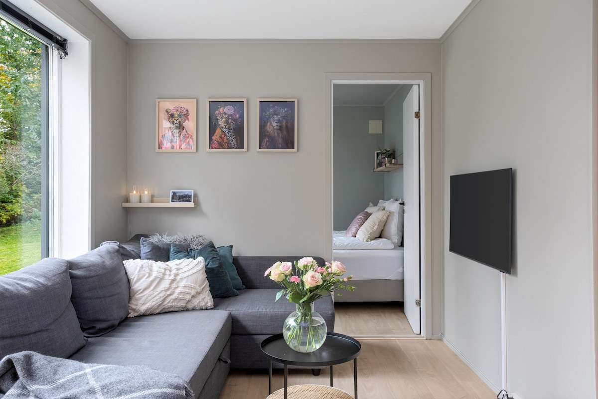 Chào mừng bạn đến với Knatten lịch sử — Một ốc đảo xanh, yên bình ngay trung tâm Horten, với tầm nhìn toàn cảnh vịnh hẹp Oslo. Ở trong một nhà khách dễ chịu — một phòng riêng lớn (28 m²) — có giường lục địa sang trọng, ghế sofa và bàn ăn. Nhà khách không có nước sinh hoạt, nhưng bạn sẽ được sử dụng nhà bếp và phòng tắm lớn, được trang bị đầy đủ tiện nghi của tôi trong nhà chính. Bãi đỗ xe riêng miễn phí. Wifi cáp quang miễn phí. Chỉ 4 phút đi bộ đến trung tâm thành phố. 10 phút đến bãi biển và đến những con đường mòn ven biển tuyệt đẹp.
