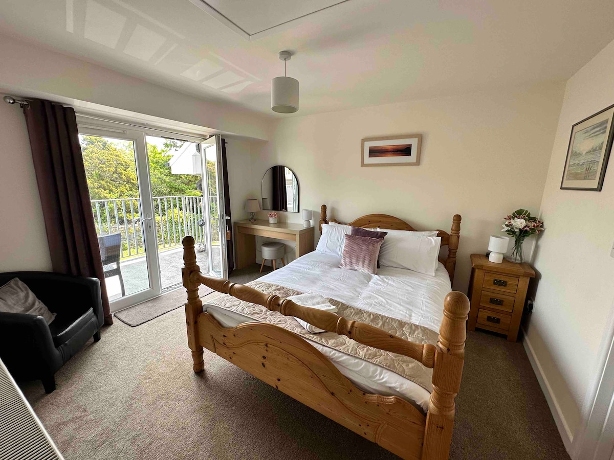 We live in a quiet location situated on the outskirts of Barnstaple, tucked away in a quiet residential area. Nearest amenities are approx 15 min walk. “The Tarka suite”is made up of 3 seperate rooms plus a covered garden room with electric points. There is a king sized bed, 2 seater sofa, a small dining area and small well equipped kitchen area which includes a std fridge, a ninja twin drawer acti fry and single hob. Crockery, pans and cutlery are provided. Use of hot tub at extra cost.