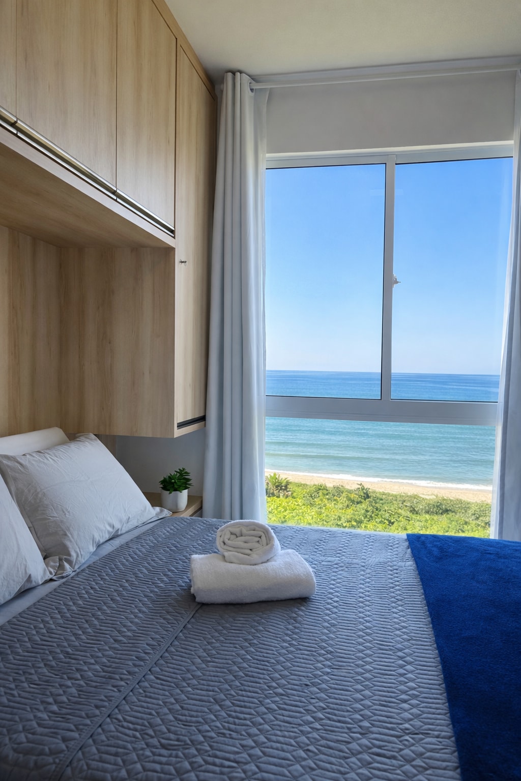 Experimente ficar hospedado num apartamento com vista privilegiada do mar, pé na areia de verdade e com piscina e jacuzzi aquecidas! O condomínio oferece 03 conjuntos de piscinas, 09 Spas, salão de jogos, quadra poliesportiva, brinquedoteca, 04 playgrounds, 03 espaços zen, pistas de caminhada, espaço pet, cancha de bocha, quadra de areia! Open Mall com cafeteria, pizzaria, petshop, decoração, mini-mercado, confeitaria, assados, lavanderia, sorveteria e muito mais!