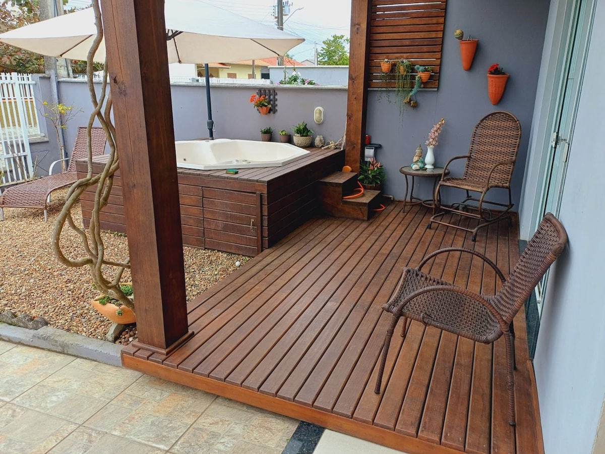 Nằm gần vùng biển nguyên sơ của bờ biển Santa Catarina, ngôi nhà quyến rũ của chúng tôi cung cấp mọi thứ bạn cần cho một kỳ nghỉ đáng nhớ. Với ba phòng rộng rãi, tất cả đều có điều hòa không khí để bạn thoải mái và hai phòng tắm xã hội hiện đại, chỗ ở của chúng tôi lý tưởng cho các gia đình hoặc nhóm muốn thư giãn và tận hưởng khí hậu nhiệt đới. Hãy tưởng tượng bạn đang thư giãn dưới ánh nắng mặt trời bên một hồ bơi riêng hoặc chuẩn bị một bữa BBQ ngon trong khu vực ngoài trời của chúng tôi được trang bị BBQ.