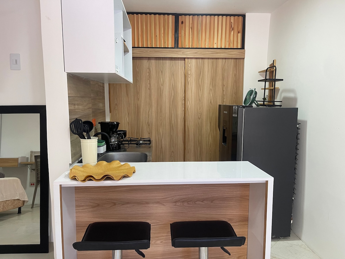 Aparta-estudio con capacidad para 5 personas de 22 M2 con 4 mts, muy acogedor, se encuentra ubicado en el exclusivo Barrio Alto Prado a 100 mts. del parque rosado, muy cerca del Centro Comercial Villa Country, Parque Washington y del Centro Comercial Viva Barranquilla. Hay facilidad de conseguir todo tipo de transporte público, zona muy segura, ubicación estratégica para ir a cualquier parte de la ciudad, cerca de la vida nocturna pero en la tranquilidad de un barrio residencial. Registro 127625