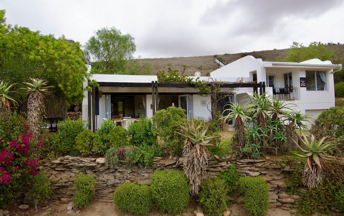 Ngôi nhà độc đáo này nằm ngay trung tâm ngôi làng nhưng vẫn mang đến sự thanh bình và yên tĩnh. Nó có tầm nhìn tuyệt vời ra khu vườn và ngôi làng trên dãy núi Langeberg. Nhỏ gọn nhưng rộng rãi. Tùy chọn giường cỡ King hoặc giường đơn. Và buồng tắm vòi sen. Bếp có bếp từ 2 bếp và lò vi sóng. Và tùy chọn tham gia các lớp học nấu ăn cho The Kitchen Couple của Michelle Berry, người sở hữu Mez Karoo Kitchen nổi tiếng cũng là một lựa chọn!