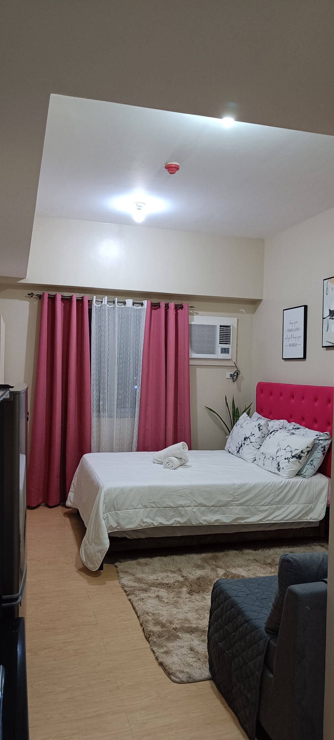 Chào mừng bạn đến với The Chastains Sky Corner – Mactan, một căn hộ góc sáng sủa và ấm cúng ở tầng 10 tại Saekyung Village 1 Giai đoạn 3. Không có những thứ phù phiếm của khách sạn! Chỉ là một căn cứ sạch sẽ, tối giản với tầm nhìn toàn cảnh ra hồ bơi và đường chân trời thành phố. Hoàn hảo cho công việc hoặc thư giãn với WiFi lên đến 400 Mbps, TV thông minh với Netflix & SKY TV, karaoke mini, giường queen, điều hòa không khí, vòi sen nóng và bếp đầy đủ tiện nghi. Lý tưởng cho những người du mục kỹ thuật số, khách du lịch bụi và các cặp đôi có ngân sách hạn hẹp!