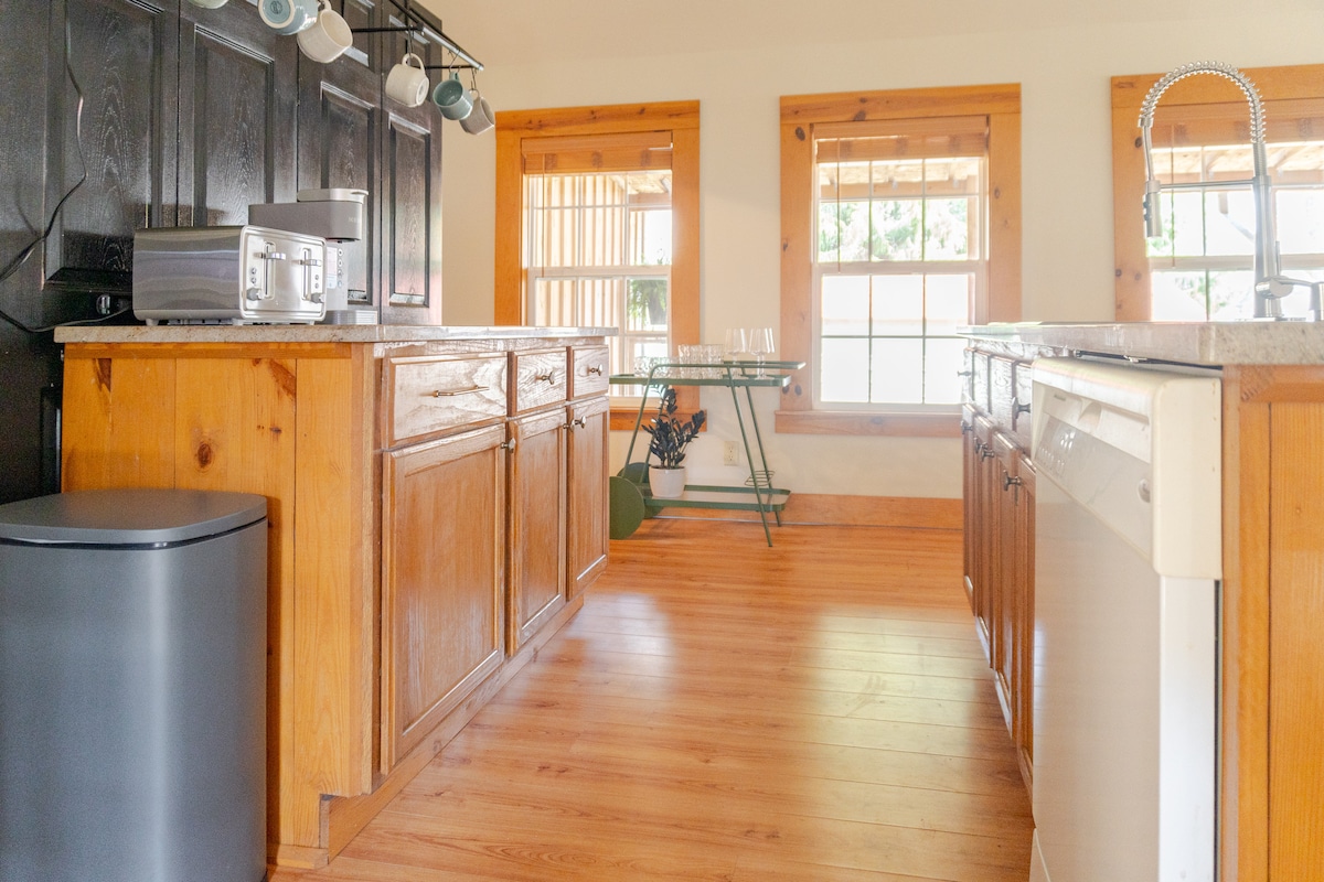 Ngôi nhà nhỏ của chúng tôi được trang bị đẹp mắt với mọi thứ bạn cần để sống (và làm việc!) sang trọng cách Blue Ridge Parkway hai dặm và cách trung tâm thành phố Floyd, Virginia hai dặm. Ngủ ngon trên nệm cỡ Queen với bọt nhớ 4". Nấu các bữa ăn ngon của bạn trong nhà bếp được trang bị đầy đủ tiện nghi -(chúng tôi cung cấp bánh mì mini chào mừng, cà phê hữu cơ, một nửa và một nửa, đường, yến mạch cuộn, dầu ô liu, muối, tiêu và quế.) Dành buổi tối để đốt lửa trại hoặc thư giãn trên xích đu ngoài hiên nhà.