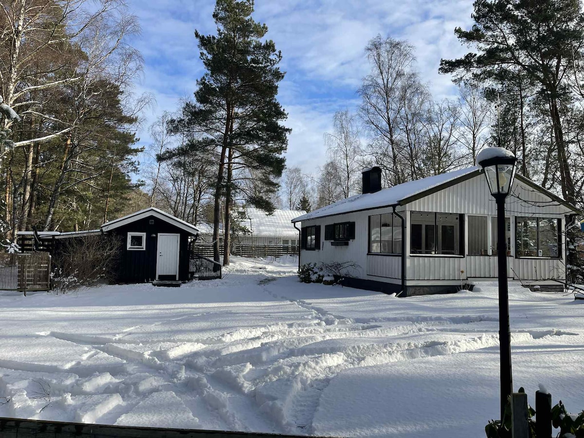 Fin stuga vid bäck och nära strand!