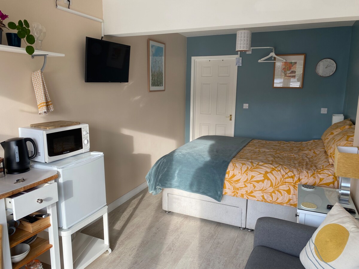 Phòng khép kín đáng yêu, sáng sủa, thoáng mát và rộng (30 m2) chỉ cách bãi biển 1 phút đi bộ. Lối vào riêng, đỗ xe trên đường lái xe trước cửa trước. Giường cỡ king, ghế sofa, bếp nhỏ cơ bản, bàn ăn, phòng tắm khép kín (phòng tắm/vòi sen) và một khu vực được trang trí riêng nhỏ. Chúng tôi chào đón những chú chó ngoan ngoãn cỡ nhỏ và trung bình. Bạn có thể đi bộ dọc theo bãi biển hoặc tham gia vui chơi Goodwood. Căn phòng là một phần của ngôi nhà chính của gia đình vàdưới phòng ngủ nên sẽ nghe thấy tiếng ồn từ gia đình.