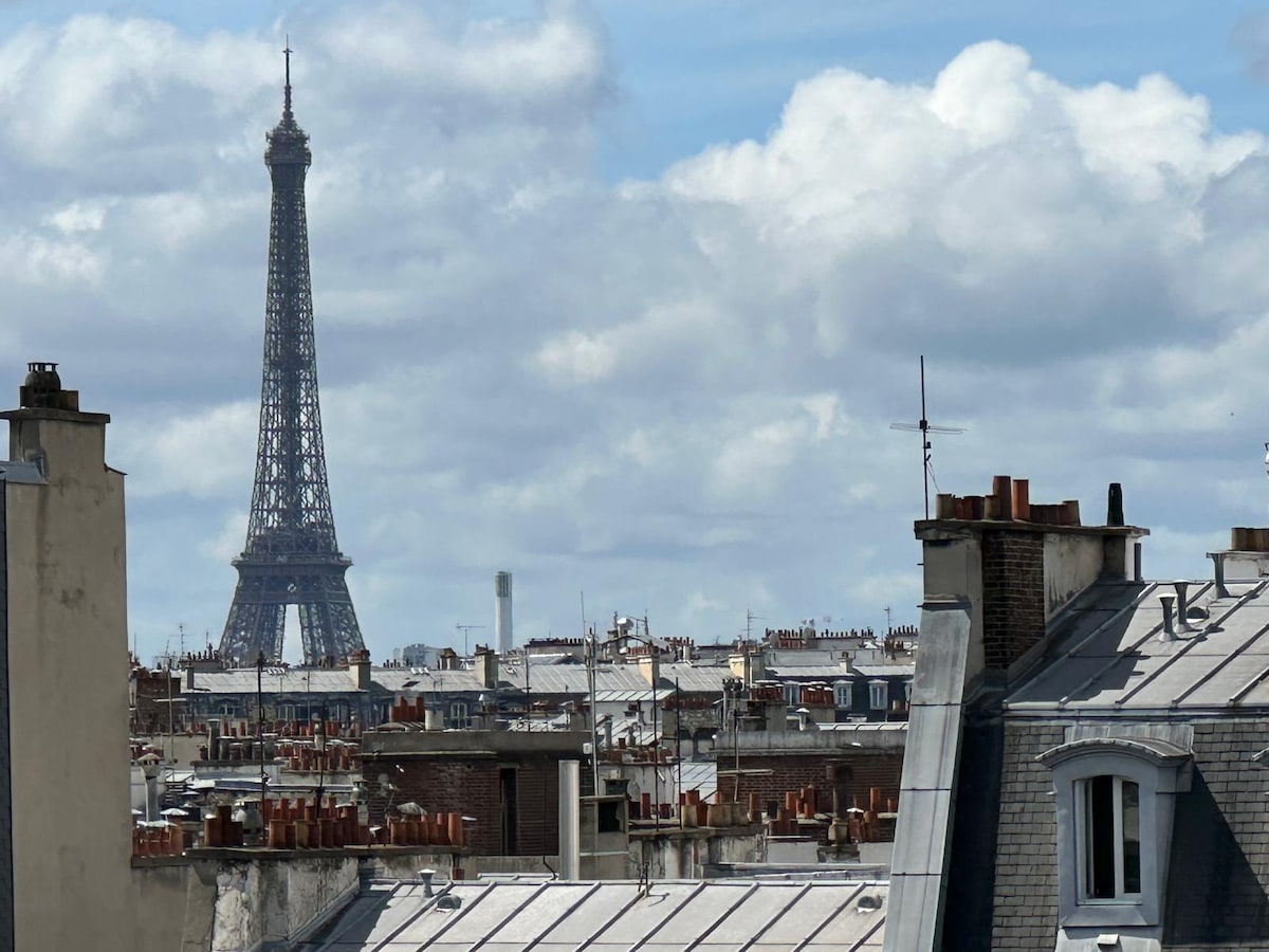 Căn hộ này có vị trí lý tưởng gần tất cả các địa điểm và dễ dàng đến bằng phương tiện giao thông công cộng hoặc đi bộ. Toàn bộ nhà rộng 75 m², phòng khách với bếp mở được trang bị đầy đủ tiện nghi. Không gian phòng ăn có bàn và ghế Quang cảnh tươi sáng, đặc biệt của mái nhà Paris và Tháp Eiffel. Hai phòng ngủ độc lập, một phòng nhìn ra sân thượng với phòng tắm vòi sen, phòng còn lại có phòng tắm. hai nhà vệ sinh. Lý tưởng cho hai cặp vợ chồng.